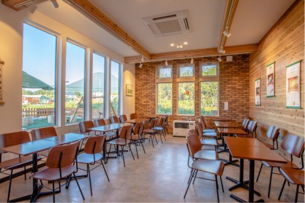 道の駅ニセコビュープラザの正面にある「石窯パンマルシェ HARU」は、焼き立てパンの香りに包まれる人気ベーカリーカフェ。大きな窓から光が差し込む店内は明るく、ドライブ途中の立ち寄りにもぴったりの開放感ある空間です。羊蹄山を望むロケーションも魅力で、旅の休憩に気軽に利用できます。
