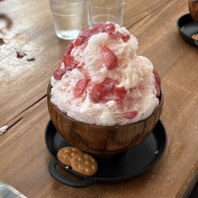 長瀞の人気スポットとして知られる「阿左美冷蔵 寶登山道店」は、ふわふわとした食感のかき氷を求めて多くの人が訪れる名店カフェ。天然氷ならではのやわらかい口どけと、果汁シロップの上品な甘さが特徴で、どの季節に訪れても行列ができるほどの人気です。