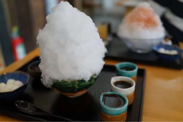 注目メニューには、見た目も華やかな「イチゴとメロンのかき氷」や、シンプルに氷そのものを楽しめる「氷」などがあり、素材の味を存分に味わえるラインナップが魅力。季節限定のかき氷や、柚子&みかん、秘伝みつなど、シロップにもこだわりが感じられます。