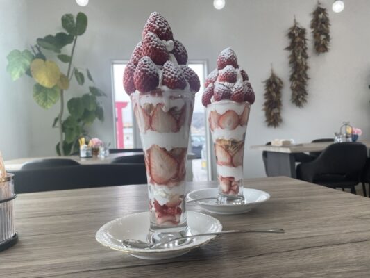 前菜からパフェまで揃うメニューの中でも、人気の「いちごパフェ」は、フレッシュな甘みが広がる華やかなスイーツとして評判。香ばしい風味が特徴の「チャコールコーヒー」も、コクがありながらすっきり飲めると好評です。季節ごとに変わるラインナップもあり、訪れるたびに新しい魅力に出会えるカフェです。