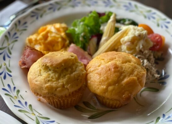 安曇野市穂高有明、有明の森の中にひっそりと佇むログハウス風の隠れ家カフェです。店内は木立に囲まれ、照明が落とされた落ち着いた空間で、日常を忘れてのんびりとくつろぐことができます。人気のメニューは、きのこソースやデミグラスソースが選べるふわふわのオムレツで、マフィンまたはガーリックライスが添えられ、満足感のある食事が楽しめます。また、マフィンサンドやフレンチトースト、手作りケーキなど軽食やスイーツも充実しています。緑に包まれた屋根付きのウッドデッキテラス席は、ペット同伴が可能で、景色を楽しみながらティータイムを過ごせます。松本方面からは大糸線で安曇追分駅からアクセスできます。