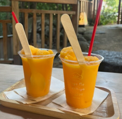 夏に人気のかき氷は、暑い季節にぴったりの爽やかな味わいで好評。お茶菓子と一緒に楽しめば、心も体もほっと和らぐ癒しのカフェタイムに。メニューを注文すると足湯用タオルを貸してもらえるため、手ぶらで訪れても安心して利用できます。