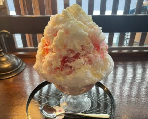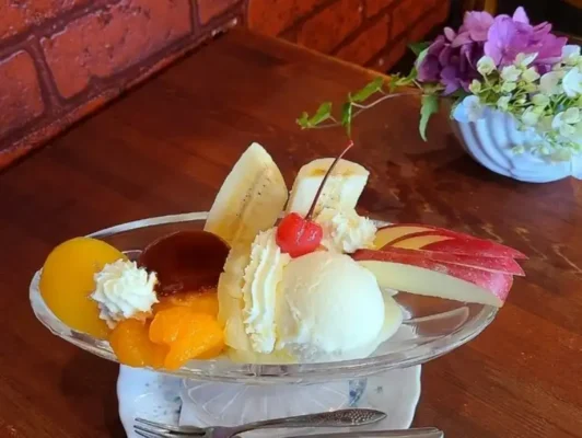 新潟市の本町中央市場「人情横丁」にある、大正浪漫の雰囲気漂う隠れ家的な茶房です。ノスタルジックなステンドグラスが彩る店内はわずか9席で、店主がお一人で丁寧に切り盛りされています。新潟で一番との呼び声も高いかき氷は、抹茶あずきや季節のフルーツを使ったものなど種類豊富。看板の二兎屋パフェは上から底まで美味しいと評判で、ぜんざいやあんみつなど和の甘味も充実しています。一人でふらりと立ち寄りやすく、友人との語らいにもぴったり。JR新潟駅から車で約9分です。