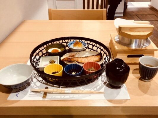 京都市北区の新大宮商店街にある、早朝から本格的な和朝食が楽しめる完全予約制のお店です。朝ごはんをゆっくり、しっかり、楽しくというコンセプトのもと、丹精込めた料理と丁寧なおもてなしを提供しています。注文を受けてから炊き上げる新潟産コシヒカリは、羽釜で一つ一つ丁寧に炊かれ、炊き立てのご飯の香りと味わいが格別です。メインは鮭の西京焼き、鯖の塩麹焼き、ふく(フグ)のフライ・タルタルソースの3種類から選べ、籠盛りで提供される多彩な小鉢料理も魅力的です。食前スープから始まり、炊き立てのご飯を待つ時間も含めて、ゆったりと朝の時間を過ごせます。デザートの甘味まで付いた贅沢な朝食は、京都旅行の特別な思い出になること間違いなしです。