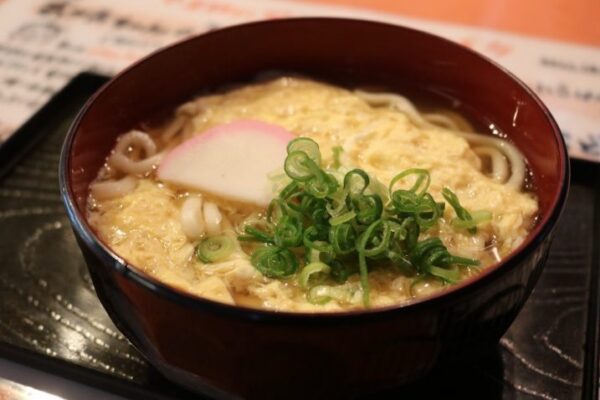JR京都駅構内地下東口にある、早朝7時から営業する便利なうどん店です。長崎県九十九島のいりこと北海道産利尻昆布でじっくり抽出した出汁に、瀬戸内海産のいりこを追い足した、香り高い二種類のいりこ出汁が自慢です。店内で製麺する自家製麺は、讃岐系のもちもちとした食感とのどごしの良さが特徴で、いりこ出汁との相性も抜群です。一番人気は鶏卵カレーうどんで、カレーに鶏卵のあんかけをトッピングした独創的な一杯が楽しめます。リーズナブルな価格設定も魅力で、かけうどんは350円からとお財布に優しく、旅行者にも地元の方にも人気です。食券制のセルフサービスで、朝から夜遅くまで営業しているため、新幹線の乗車前後に気軽に立ち寄れます。