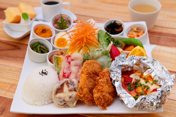 鹿児島県霧島市にある地産地消推進店のカフェレストランです。地元で採れた新鮮な野菜や厳選した鹿児島県産のお肉など、素材にこだわった料理を提供しています。一番人気のマテリアランチは、ジューシーな黒豚ヒレカツをメインに、軟骨の煮込みや季節の小鉢が彩り豊かに盛り付けられたボリューム満点のワンプレートです。店内はバリアフリー設計で、お座敷席やテラス席も完備しており、テラスではペットと一緒に食事を楽しむこともできます。霧島神宮駅からバスで約15分の場所にあり、霧島神宮参拝の帰りに立ち寄るのにもおすすめです。