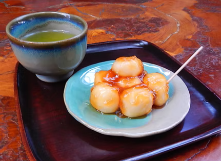 日光東照宮からほど近い中鉢石町にある「宮前だんご」は、享保八年創業という約300年の歴史を誇る老舗の甘味処です。東武日光駅から徒歩約15分、店舗前には2台分の駐車スペースもあり、観光の合間に立ち寄りやすい立地です。看板商品は、もち米を使わずうるち米と米粉で作られた楕円形の団子で、香ばしく焼き上げた後に秘伝の味噌だれと黒砂糖のたれを重ねた素朴な味わいが特徴です。一串に4粒という縁起の良い形も魅力のひとつ。抹茶やコーヒーと楽しめるセットメニューもあり、甘味とともにほっと一息つける空間が広がります。テラス席ではペット同伴も可能で、自然の風を感じながらゆったりとした時間を過ごせます。