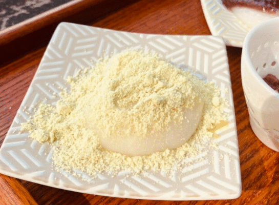 山形県鶴岡市羽黒山の二の坂石段頂上に佇む二の坂茶屋は、出羽三山参拝路の伝統的な甘味処です。鶴岡駅からバスで五合目まで約45分、そこから2446段の石段を登るハイキングコースにあり、五合目駐車場を利用してアクセスします。苔むした古道を見晴らすテラス席と畳の店内は禁煙で、家族連れも安心です。名物のきなこ餅はふんわりお餅に香ばしいきな粉がたっぷり。あんこ餅の粒あんも優しい甘さで、玉こんにゃくは甘辛タレが染みた軽い一品です。お茶や麦茶とともに、参拝の疲れを癒す素朴な味わいが魅力。自然と歴史を感じる出羽三山の旅に欠かせない癒しスポットです。