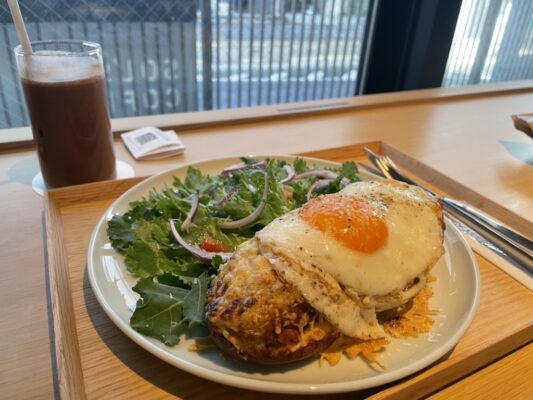 人気の「シュガードーナツ」は、ふわっと軽い食感と優しい甘さが魅力の定番メニュー。また、「バスクチーズケーキ」や「サラダプレート」「BLTサンドプレート」「自家製キーマカレー」など、軽食から食事系まで幅広く揃っています。ドリンクはアメリカーノやアイスカフェラテのほか、水出しアイスコーヒーも評判。1,000円以内で楽しめるメニューも多く、普段使いにぴったりのカフェです。
