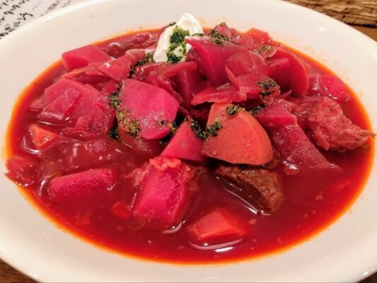 人気メニューの「ボルシチ」は、野菜の旨みが溶け込んだ深い味わいが魅力で、多くの人が注文する看板料理。また、「サーモンのグリル タルタルソース」は香ばしく焼き上げられたサーモンと濃厚なタルタルの相性が抜群です。ほかにも、ハーブチキンのグリルや北欧風のスイーツなどメニューが豊富で、どれも丁寧に作られた優しい味わいが楽しめます。