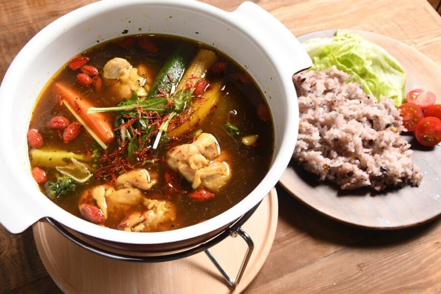 「薬膳×ヴィーガンカフェ Cafe de Cuore」は、板橋区・前野町にある、心と体にやさしいメニューが揃うヘルシー志向のカフェ。薬膳とヴィーガン料理を組み合わせた珍しいスタイルで、動物性食材不使用とは思えない満足感ある味わいが楽しめます。店内はナチュラルで落ち着いた雰囲気が広がり、ゆっくり過ごせる居心地の良さが魅力。愛犬同伴OKの席もあり、ペットと一緒に利用できる点も人気の理由です。