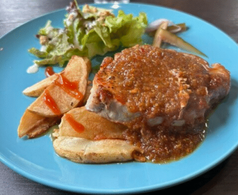 2024年12月13日、休暇村紀州加太の山麓にオープンしたカフェです。日高川町で人気を博した「かなうカフェ」が、4年の歳月をかけて理想の地を探し続け、ついにたどり着いたのがこの加太の地でした。オーナー自らの手で廃屋同然の建物を再生させた店内には、テーブル席とカウンター席、そして自然を望むテラス席が設けられています。看板メニューは、こだわりの肉屋から仕入れた250グラムのポークステーキで、ニンニク香る秘伝の手作りソースが食欲をそそります。厚切りながら柔らかくジューシーな一皿は、ボリューム満点で腹ペコでも大満足間違いなしです。また、たっぷりの卵で焼き上げたフレンチトースト風シフォンケーキやチーズケーキなど、スイーツも充実しています。南海加太線加太駅から車で約5分、敷地内に駐車場を完備しています。