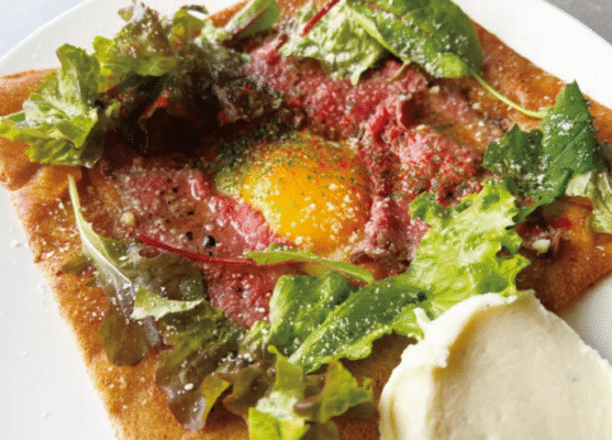 JR和歌山駅東口から徒歩約10分の場所にある「カフェ&クレープリー とびだす焙煎所」は、2023年にオープンした和歌山市初のクレープ・ガレット大型専門店です。創業65年以上の歴史を誇るコーヒー卸会社「ダートコーヒー」が手がけており、店内には和歌山県初となる最新焙煎機を備え、新鮮な自家焙煎コーヒーを提供しています。クレープとガレットは串本町の人気店監修のもと研究を重ねた本格派で、一枚一枚丁寧に手焼きされた生地はパリッともちっとした絶妙な食感が魅力です。そば粉を使った香ばしいガレットは自家製ハムや卵、チーズを組み合わせた定番の「コンプレット」や「自家製ローストビーフのガレット」が人気です。本場フランス流にりんごの発泡酒シードルと合わせるのもおすすめです。鉄道モチーフのおしゃれな店内は70席を備え、ゆったりとした空間でくつろげます。無料駐車場35台完備、モーニングメニューやテイクアウトにも対応しています。