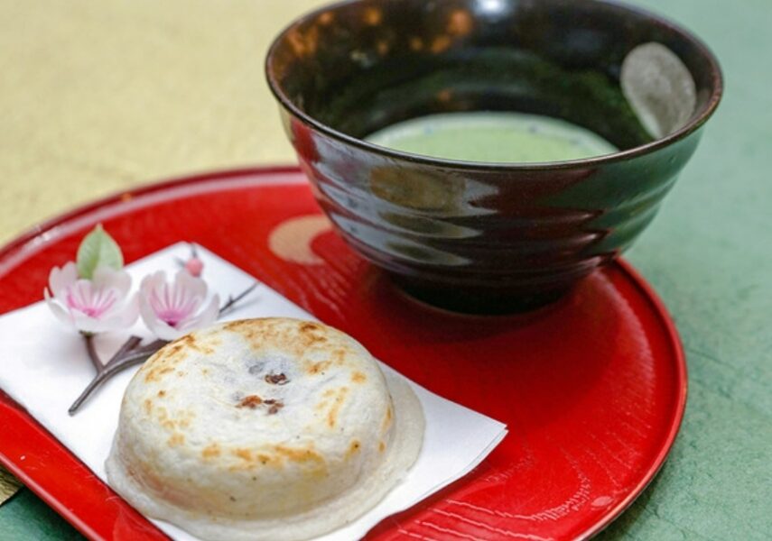 太宰府天満宮の鳥居すぐそばに店を構える「寿庵 寺田屋」は、昭和3年創業の老舗梅ヶ枝餅専門店です。西鉄太宰府駅から徒歩約2分、参道の終点という好立地にあり、歴史ある佇まいが参拝客を迎えます。昔ながらの製法を守り続ける梅ヶ枝餅は、手焼きで何度も開閉を繰り返しながら丁寧に焼き上げるのが特徴で、外はパリッと香ばしく中はもっちりとした厚みのある生地に、甘さ控えめの上品なあんこが絶妙なバランスで包まれています。店舗奥には風情ある中庭を望む喫茶スペースがあり、焼きたての梅ヶ枝餅と丁寧にたてられた抹茶のセットでゆったりとした時間を過ごせます。抹茶のほか珈琲や紅茶とのセットも選べるのが嬉しいポイントです。また、看板商品の飛梅漬や合格梅など太宰府ならではのお土産も揃い、参拝の思い出とともに持ち帰ることができます。