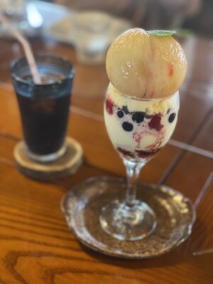 人気メニューの「まんまる桃と山葡萄パフェ」は、旬の桃と自家栽培の山葡萄を贅沢に使用した写真映え抜群の一品。また、「オムタコライス」や、土日限定の「新鮮なウニとトマトの冷製パスタ」など、見た目も味も楽しめる料理が揃っています。自然に癒されながら、季節の恵みが詰まったメニューを味わえる、雫石ならではの魅力あふれるカフェです。