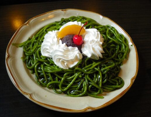名物の「甘口抹茶小倉スパ」は、抹茶・小倉・生クリームを組み合わせた一皿で、甘党にもチャレンジ精神旺盛な方にも人気。また、「大人のお子さまランチ」など、遊び心あふれるメニューも揃っており、写真映えもばっちりです。ボリューム満点なので、友達とシェアしながら楽しむのもおすすめ。
