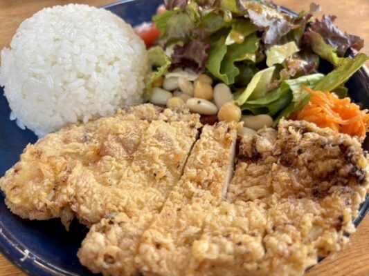 看板メニューの「タコライス」は、しっかりと味の染みた具材と満足感のあるボリュームが特徴。また、スパイスとヨーグルトで仕込んだチキン料理も評判で、地元野菜や魚介を使ったメニューが楽しめるのもポイント。夜はお酒と合わせてゆっくり食事を楽しめる、おしゃれで使い勝手の良いカフェです。