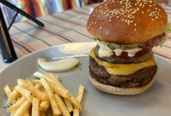 2022年にオープンした「PACIFIC SURF CAFE(パシフィック サーフ カフェ)」は、名護市大東に佇むカリフォルニアスタイルのおしゃれなカフェです。開放感あふれる店内にはサーフボードや雑貨がディスプレイされ、まるで海外にいるかのような雰囲気が漂います。看板メニューのハンバーガーは、ジューシーなパテにたっぷりの野菜を挟んだボリューム満点の一品で、アボカドチーズバーガーが特に人気です。ハンバーガー以外にもピッツァやパスタ、サンドウィッチなど多彩なフードメニューが揃い、サイドの唐揚げやポテトも好評です。ドリンクはバナナジュースやスムージー、ミルクティなどカフェメニューに加え、ギネスビールやジンジャエールなどアルコール類も充実しています。ゆったりとした時間が流れる居心地の良い空間で、やんばるドライブの休憩にぴったりです。無料駐車場を完備しており、予約も可能です。