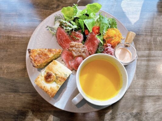 ランチでは、自家製スパイスカレーやグルテンフリーのパスタ、米粉ピザ、日替わりプレートなど、素材や調理にこだわったメニューが揃います。スープやサラダまで丁寧に作られており、「身体にやさしく、満足感がある」と評判。夜はダイニングバーとして営業し、食事とお酒を楽しめるのもポイントです。石和エリアで、健康志向のランチから夜の食事まで幅広く使えるカフェを探している方におすすめです。