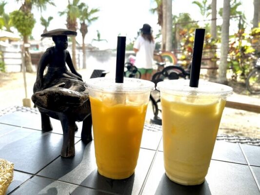 新鮮な南国フルーツを使ったスムージーが人気で、なかでも「生マンゴースムージー」は定番メニューのひとつ。コーヒーやカクテルなどドリンクの種類も豊富で、時間帯によって異なる雰囲気を楽しめるのも魅力です。竹富島で、昼も夜も使えるカフェを探している方におすすめの一軒です。