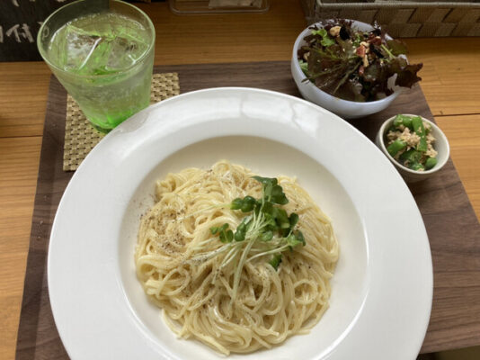 メニューではパスタが人気で、ランチタイムに利用する人も多い様子。日常の延長線上で使いやすく、ひとりでもグループでも入りやすいのが特徴です。男鹿で、地域密着型のカフェや、ほっと一息つける場所を探している方におすすめの一軒です。