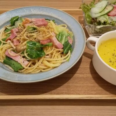 人気メニューは「週替わりランチ」や「モーニングDセット」。しっかり食事を楽しみたい方にも好評で、ランチタイムには安定した支持があります。また、パスタメニューではペペロンチーノが人気。食事だけでなくスイーツやドリンクも揃っており、堅田エリアで使い勝手の良いカフェを探している方におすすめです。