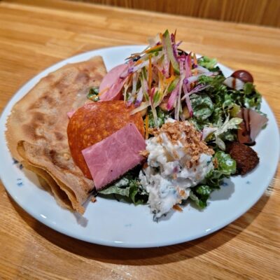 名物は、ボリュームたっぷりの蕎麦粉ガレット。特に「ガレット風サラダ」は、具沢山でヘルシーながら食べ応えがあり、口コミでも満足度の高さが評価されています。また「ランチスープ」も野菜がたっぷり使われており、素材の旨みを感じられる一品。大森で“軽すぎない、ちゃんと満たされる食事”を求める方におすすめのお店です。