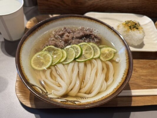 本町のオフィス街のど真ん中で、本格的な讃岐うどんを立ち食いスタイルで楽しめる人気店です。スタイリッシュな白い暖簾が目印で、店内はコンクリート打ちっ放しのモダンな空間。朝7時から営業しており、出勤前のビジネスマンやうどん好きが、至福の一杯を求めて列を作ります。こちらのうどんは、本場・香川で修業した店主が打つ、コシのある太麺と風味豊かな出汁が特徴です。朝限定のメニューや、温かい出汁と冷たい麺を組み合わせた「あつひや」など、通好みの食べ方も楽しめます。サクッと食べられる立ち食いスタイルながら、そのクオリティは専門店そのもの。大阪の「朝うどん」文化を体験するなら、外せない一軒です。