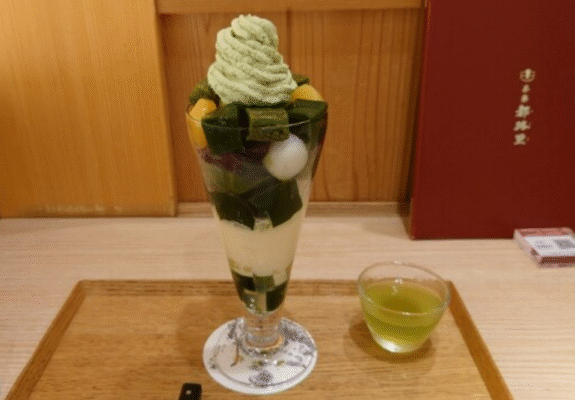 茶寮都路里 祇園本店は、京都・祇園の四条通沿いに位置する、老舗茶舗「祇園辻利」プロデュースの人気甘味処です。京阪「祇園四条駅」から徒歩約3分とアクセスも良く、観光の合間に立ち寄りやすい立地となっています。看板メニューの特選抹茶パフェは、濃厚な抹茶アイスや白玉、寒天、栗などが贅沢に盛り込まれた一品で、抹茶好きにはたまらない味わいです。そのほか、抹茶そばやあんみつ、ぜんざいなどの甘味・軽食メニューも豊富に揃っており、季節限定メニューも人気を集めています。店内は2階・3階に広がる落ち着いた空間で、和の雰囲気の中ゆったりと過ごすことができます。混雑することも多いですが、その価値のある一軒です。