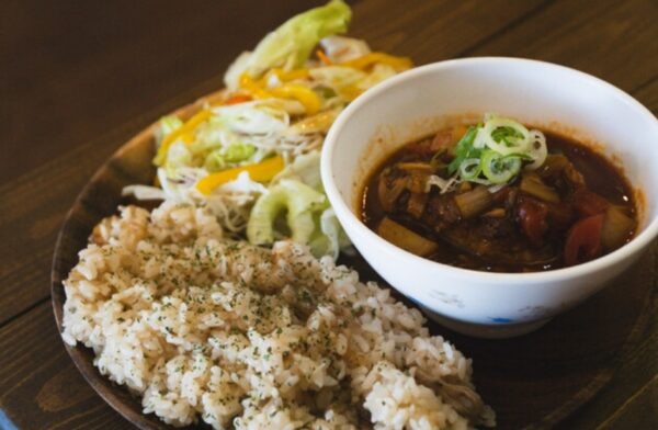 看板メニューの半熟フレンチパンケーキは、ふわっと軽くとろける食感が人気で、季節限定のパンケーキも楽しみにしている方が多いそう。自家製マフィンやレモンタルト、彩りのきれいなカップスイーツなど、カフェタイムにうれしい甘いメニューも揃っています。無農薬ハーブを使ったスムージーや自家製レモネードなど、体にやさしいドリンクも好評。スパイスの香りが食欲をそそるアジアンカレーやライスプレートもあり、ランチからおやつ時間までゆったり過ごせるカフェです。