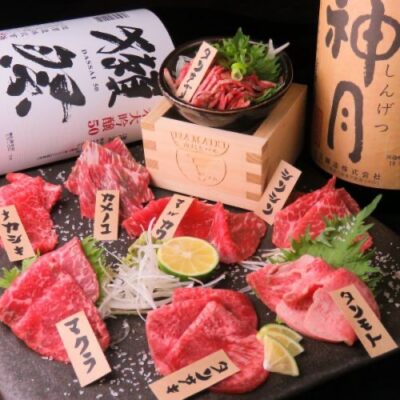 徳島市銀座にある生肉専門の肉割烹バル。三重県産の幻の伊賀牛を使った牛刺しやユッケが看板メニューで、厚生労働省の厳しい認定基準をクリアした安全な生肉を堪能できます。サーロインの瞬間炙りや熟成割り下で食べる贅沢なユッケなど、肉好きを唸らせる料理が並びます。部屋ごとに異なる雰囲気の完全個室が多数あり、誕生日や記念日のメッセージプレートも人気。プライベート空間でゆっくりと極上の肉料理を楽しめます。