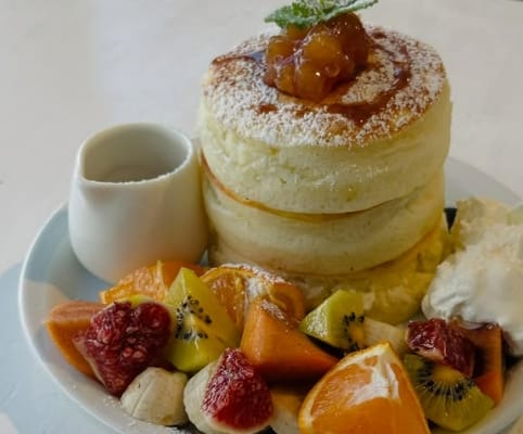 「とろもカフェ」は観音寺市柞田町の落ち着いた住宅街にあるカフェで、観音寺駅から車で約10分、敷地内には駐車場も完備されており車での来店もスムーズです。白を基調とした外観とガラス張りの明るい店内が印象的で、全席禁煙のため、どなたでも快適に過ごせる空間です。看板メニューのパンケーキは注文ごとに丁寧に焼き上げられ、もちもちとした食感とたっぷりのフルーツやクリームが相性抜群で人気を集めています。ランチタイムには、チキン南蛮や週替わりのプレート、ベーグルサンドなどボリュームのある食事メニューも充実しており、しっかり食べたいときにもおすすめです。ドリンクは自家焙煎のコーヒーやラテ、季節のフルーツを使ったドリンクなど種類豊富で、どれもカフェタイムをより楽しくしてくれます。