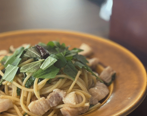 「La Cuisine」は、JR上田駅お城口から徒歩6分ほどの閑静な路地にあるカフェ&ビストロで、駅散策ついでにふらっと立ち寄りやすい立地です。駐車場は2台分あり、車でも訪問しやすいのが嬉しいポイントです。ランチタイムからディナーまで通しで利用でき、気軽に楽しめるパスタやカレーが人気で、14種類以上のパスタメニューやトッピングが選べるカレーなど、バラエティ豊かな食事が楽しめます。ガーリックやトマトソースのパスタは香り高く、濃厚なカルボナーラなど本格派の味わいも魅力です。ドリンクはコーヒーや自家製レモネードのほか、ビールやワインなどアルコールメニューもあり、昼夜問わず幅広いシーンで利用できます。デザートにはチョコバナナクレープなどの甘い一品もあり、カフェタイムにもおすすめです。