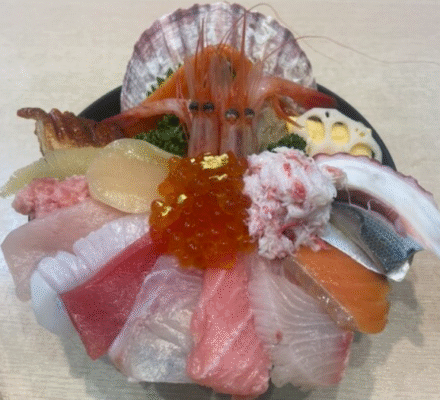 金沢近江町市場内にある創業60年の老舗寿司店です。朝9時から営業しており、新鮮な地物や近海産の魚介類を使った海鮮丼や握り寿司が楽しめます。特に人気の海鮮丼は18種類のネタが豪華に盛り付けられており、見た目の華やかさと味わいの両方で訪れる人を魅了しています。お米、お醤油、お酒にも地元産のこだわりの食材を使用し、海苔は最高級の有明産を使用するなど、細部まで品質にこだわっています。近江町市場という金沢を代表する観光スポットの中にあり、一貫から丁寧に握ってもらえるため、朝から贅沢な金沢の味覚を堪能できるおすすめの朝食スポットです。