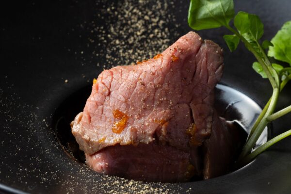 大分市都町にある「低温調理と旬野菜の店 ウロノロ」は、その名の通り低温調理の肉料理と契約農家から仕入れる有機野菜が自慢のお店です。深みのある黒をベースにしたシックで落ち着いた空間は、デートや接待にもぴったり。8時間じっくりかけて低温調理したローストビーフは、驚くほどやわらかく、リピート率No.1の人気メニューです。豊後牛100%使用のハンバーグや、前日予約限定のTボーンステーキなど、肉料理のバリエーションも豊富。朝採れの有機野菜を使った「季節の旬鮮有機野菜 手づかみ板盛り」2200円も人気で、野菜本来の旨みと甘みを存分に味わえます。おまかせコースは6600円から。大分駅から徒歩約10分、大人の隠れ家的なディナースポットです。
