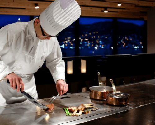 ガーデンテラス長崎ホテル&リゾート内の「レストラン フォレスト」は、長崎港を一望できる絶景フレンチレストランです。稲佐山中腹に位置し、天井から床まで続く大きなガラス窓から長崎の美しい夜景を眺めながら食事を楽しめます。中川シェフは地元野菜を中心にメニューを組み立て、長崎の旬の食材をふんだんに使った色鮮やかな料理を提供。オードブルから魚料理、肉料理まで、一皿一皿に長崎の四季が映し出されます。月替わりのコース料理は訪れるたびに新しい発見があり、世界中から厳選したワインとのマリアージュも楽しめます。デートや記念日、接待など特別な日のディナーに最適なレストランです。