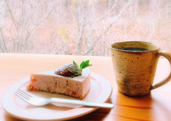 人気のスイーツは、しっとり濃厚なガトーショコラや季節のチーズケーキなど。どれも丁寧に手作りされていて、見た目も美しく“写真映え”もばっちりです。自家焙煎のコーヒーは豆の風味を活かしてハンドドリップで淹れられ、香りとコクが心地よく広がります。気に入ったコーヒー豆は購入も可能なので、おうちで楽しむのもおすすめ。自然の中で、上質な一杯とスイーツに癒されてみてはいかがでしょうか。