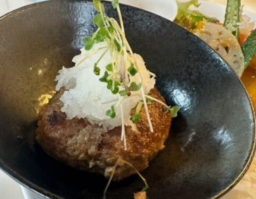 人気の「季節のめぐみのプレート」は、きのこたっぷりのハヤシライスにサラダやポトフが付いた彩り豊かな一皿。桃と生ハムのパスタなど季節の食材を活かしたメニューや、野菜を何層にも重ねて焼き上げたインビジブル、とろけるプリンなどスイーツも充実しています。1階と2階に席があり、ゆっくり話しながらランチを楽しみたい方には2階がおすすめ。蔵の落ち着いた空間でくつろぎの時間を過ごせます。