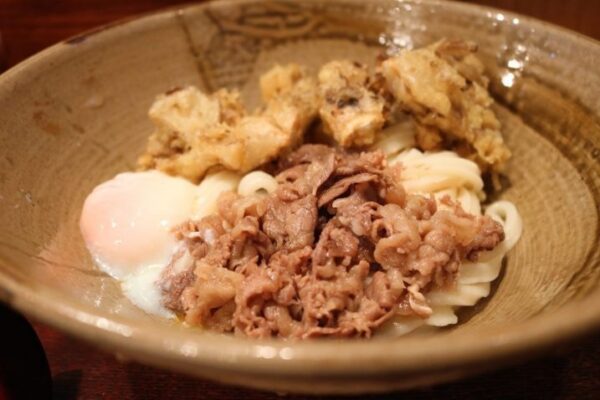 梅田の駅前ビル群の中にある踊るうどん 梅田店は、安くて美味しいディナーを探している方に絶対おすすめのスポットです。こちらのおうどんの特徴は、何といってもその独特な食感にあります。口の中で踊るような、しなやかで力強いコシが持ち味で、一度食べたら忘れられない中毒性があります。仕事帰りや観光の合間に、気軽に本格的な味を楽しめるのが嬉しいポイントです。看板メニューの肉まいたけ天おろしうどんは、サクサクに揚げられた肉厚のまいたけ天と、甘辛く炊かれたお肉が絶妙なハーモニーを奏でます。冷たいおうどんでそのコシをダイレクトに味わうのが通の楽しみ方です。店内はカウンター席が中心で、一人でも気兼ねなく入ることができます。梅田の地下に広がる迷宮のようなビルの中で、多くのファンに愛され続ける名店の味をぜひ体感してみてください。