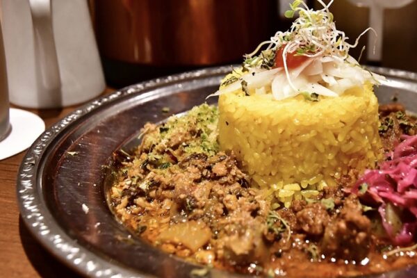 梅田の駅ビル、ルクア イーレの地下に広がる旧ヤム鐵道は、スパイスカレー好きならずとも一度は訪れたい人気店です。鉄道の食堂車をテーマにしたレトロでおしゃれな店内は、まるで旅をしているようなワクワク感に包まれています。こちらでは、月替わりで提供される数種類の独創的なキーマカレーの中から、好みのものを組み合わせて楽しむことができます。スパイスの刺激と素材の旨みが複雑に絡み合うカレーは、見た目も鮮やかで写真映えも抜群です。途中でヤムカレーという出汁の効いたルウをかけて味の変化を楽しむのが旧ヤム流。ディナータイムでもリーズナブルに本格スパイスカレーを味わえるため、お一人様や友人同士でのカジュアルな夕食にぴったりです。梅田のど真ん中で、スパイス香る鉄道の旅に出かけてみてはいかがでしょうか。
