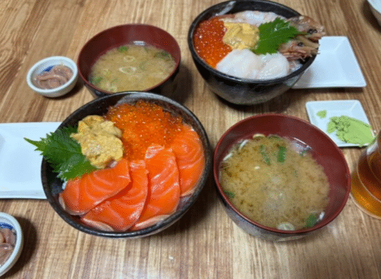 鱗友朝市内にある海鮮食堂で、小樽で最も朝早くから営業を始めるお店のひとつです。朝5時からオープンしており、新鮮な魚介類を使った朝市定食1100円や、ホタテといくらがたっぷり乗った小樽丼2400円などが人気メニュー。市場ならではの活気ある雰囲気の中、その日の朝に水揚げされた魚介を使った海鮮丼や定食を味わえます。朝市定食は、日替わりの焼き魚とミニ刺身盛りがセットになったボリューム満点の一品で、刺身はその日に近海で獲れたものを中心に使用しています。小樽駅からは徒歩約20分、車で5分ほどの場所にあり、駐車場も完備。アットホームな接客と新鮮な魚介が自慢で、観光客だけでなく地元の方々にも愛されています。市場の雰囲気を楽しみながら、北海道らしい朝食を堪能できる貴重なスポットです。