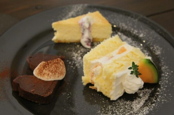 ランチには日替わりパスタが人気で、スパイシーチキンのトマトクリームパスタや黒胡麻と豚肉のパスタなど、ここでしか味わえない個性的なメニューが楽しめます。パンとドリンク付きでボリュームも満点です。スイーツはガトーショコラやショートケーキなど手作りケーキが充実しており、ハーフサイズで3種類のケーキが味わえる「ザ・レーン・カフェセット」がおすすめ。