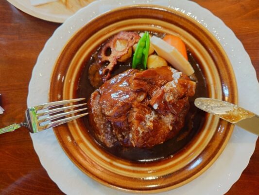 御殿場で本格的な手作りハンバーグを味わうなら「CROP(クラップ)」は外せません。国道246号線沿いにあるペンション風のかわいい外観が目印で、40年近い歴史のある黒毛和牛ハンバーグ専門店です。A4・A5ランク以上の黒毛和牛を使用したハンバーグ、ビーフシチュー、ステーキが自慢で、ライスは特Aランクのごてんばこしひかり、たまごは濃厚で栄養価の高い御殿たまごを使用と素材にもこだわっています。人気NO.1メニューの「ハンバーグ&黒毛和牛ビーフシチュー」は一つの器で二つの料理が楽しめ、ボリューム満点です。オニオングラタンスープも絶品で、ファミリーでのディナーにもぴったり。御殿場で美味しいハンバーグを食べたくなったら、ぜひ訪れてみてください。