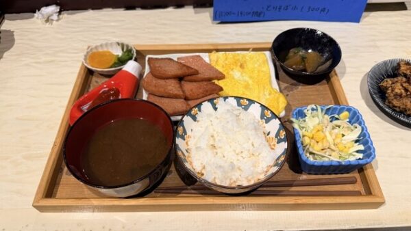 パイナガマビーチからほど近い場所にある「くじら食堂」は、朝7時30分から営業するポーク玉子おにぎりの人気店です。看板メニューのポーク玉子おにぎりは、沖縄定番のポークランチョンミートとふんわり玉子が絶妙にマッチした一品で、毎朝手作りで提供されています。唐揚げをトッピングした「唐揚げポーク玉子おにぎり」もボリューム満点で人気です。セットメニューには豚汁や唐揚げ、ドリンクが付いており、朝のエネルギーチャージにぴったり。朝10時まではテイクアウトのみの営業となっているため、ビーチで海を眺めながら朝食を楽しむこともできます。カウンター席もあり一人でも気兼ねなく立ち寄れる雰囲気で、観光客はもちろん地元の常連客にも愛されています。