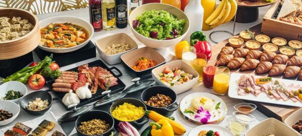 横浜東急REIホテルの9階に位置する、スタイリッシュなビストロチャイナ「ENCORE(アンコール)」。こちらの朝食のおすすめは、洋食と中華が融合したユニークなラインナップです。特に人気なのが、石窯で焼き上げる本格的な「石窯焼き料理」。外はカリッと、中はジューシーに仕上げられたメニューは、ホテルならではのクオリティを感じさせます。また、中華のエッセンスを取り入れたお粥や点心なども用意されており、朝から本格的な味わいを楽しめるのが魅力です。店内は、カジュアルながらもホテルらしい洗練された雰囲気で、特別な旅行の朝にふさわしい落ち着いた空間が広がっています。宿泊者以外も利用可能なため、みなとみらいエリアで少し贅沢な朝食を探している方にとって、まさに穴場といえるスポットです。