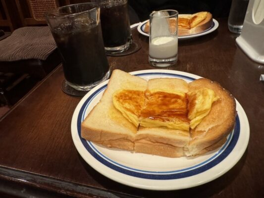 新大阪駅西口からほど近い場所に位置する「男爵」は、レトロな雰囲気が漂う純喫茶です。早朝から営業しており、朝のひとときを静かに過ごしたい方におすすめ。人気のモーニングサービスでは、厚切りトーストにサラダ、そしてふっくらとしたオムレツがセットになったボリューム満点のプレートを楽しめます。デミグラスソースがかかったオムレツは、シンプルながらもどこか懐かしい味わい。落ち着いた店内で香ばしいコーヒーとともに味わう朝食は、慌ただしい旅の始まりに安らぎを与えてくれます。喫煙可能店のため、昔ながらの喫茶店の空気感を好むファンにも支持されています。