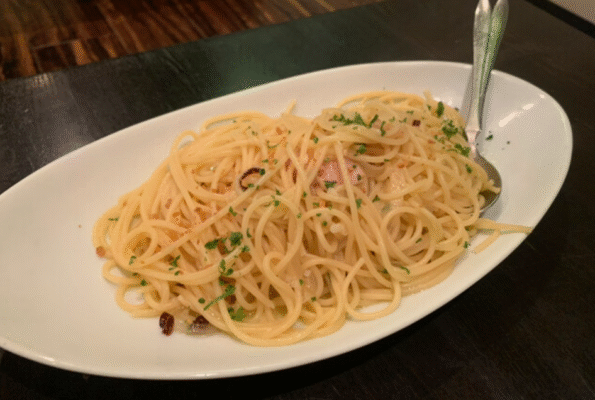 料理は一品一品ボリュームたっぷりなのが嬉しいポイント。なかでもパスタは1.5〜2人前ほどの量があり、食べごたえ抜群と評判です。旬の食材を活かした創作料理やサラダ、焼き物など幅広いメニューが揃い、何を頼んでも満足できるラインナップ。深夜0時まで営業しているので、二次会利用にもおすすめです。気の置けない仲間と美味しい料理とお酒を囲みながら、ゆっくりと過ごせる一軒です。