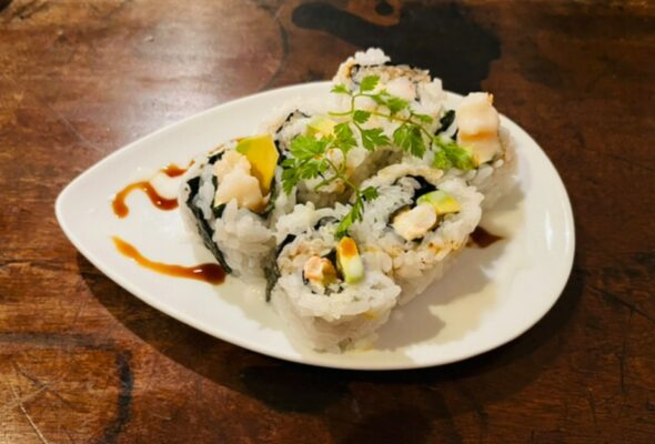 常連客に人気なのがエビアボカドロール。プリプリのエビとクリーミーなアボカドの組み合わせが絶妙で、一度食べたらリピートしたくなる一品です。そのほか、新鮮な生ウニ刺身やとろけるような牛たたき、マグロ山かけなど、海鮮を中心に多彩なメニューが揃います。刺身の盛り合わせではカンパチやシマアジ、サワラなど瀬戸内の旬の魚を堪能できます。日本酒や焼酎、ワイン、カクテルとドリンクも充実しているので、お酒好きの方も大満足。深夜1時まで営業しており、仲間との二次会にもおすすめです。