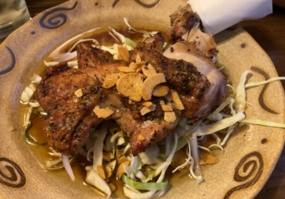 看板メニューは丸亀名物の骨付鳥。黒こしょう・塩・にんにくに加え、オリーブオイルとスパイスで下味を付けたオリジナルの味付けが自慢です。柔らかくジューシーな若鳥「若君様」と、噛むほどに旨味があふれる親鳥「お館様」の2種類から選べます。ほかにも讃岐コーチンのたたきや旬のお刺身盛り合わせ、備長炭で焼く串焼きなど香川ならではの味が揃います。凱陣や船中八策といった地酒も充実。カウンター12席を含む全32席のアットホームな空間で、お一人様でも気軽に立ち寄れる雰囲気が魅力です。