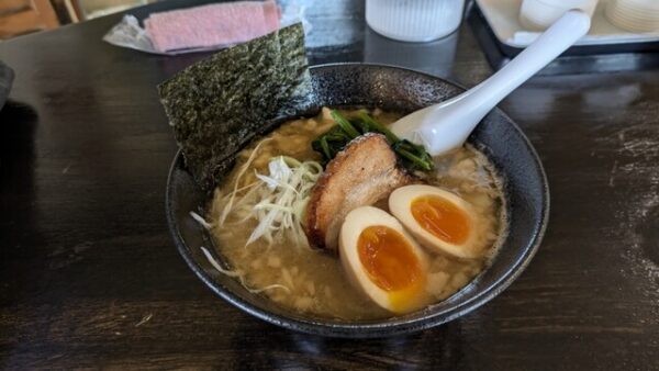 鴨川市横渚の「麺屋 褻ノ日(めんや けのひ)」は、2023年2月オープンの本格派ラーメン専門店です。安房鴨川駅東口から徒歩4分の飲食店が集まるエリアにあり、元々はワインとフレンチのお店でした。フレンチ出身の店主が「誰でも気軽に日常のように来店してほしい」という思いから、ラーメン店に生まれ変わりました。店名の「褻」は「普段着」「日常」を意味し、店のコンセプトそのものを表しています。メニューは大きく分けて「濃厚煮干しラーメン」と「淡麗醤油ラーメン」の2種類。濃厚煮干しは数日かけて仕込んだ豚骨ベースのスープにトロミがあり、煮干しの旨味が効いた中太麺との相性が抜群。特製メニューでは肩ロース、豚バラ、鶏ムネの3種のチャーシューと温玉が楽しめます。店内はカウンター6席とテーブル4席のこぢんまりとした空間で、店主がワンオペで丁寧に作る本格派の一杯が味わえます。現金払いのみなのでご注意を。